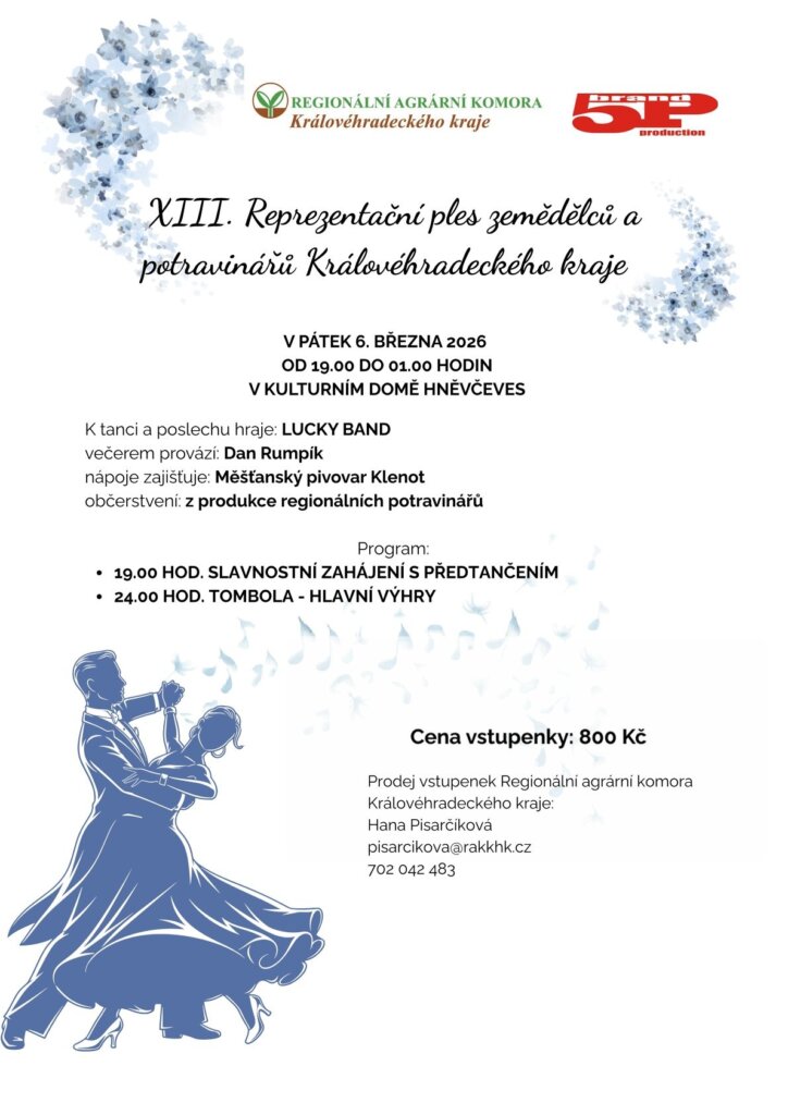 ZVEME VÁS NA 13. PLES ZEMĚDĚLCŮ A POTRAVINÁŘŮ KRÁLOVÉHRADECKÉHO KRAJE 26.ledna 2026 v Hněvčevsi